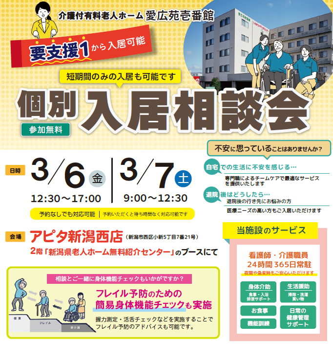 アピタ新潟西店 2階「新潟県老人ホーム無料紹介センター」のブースにて