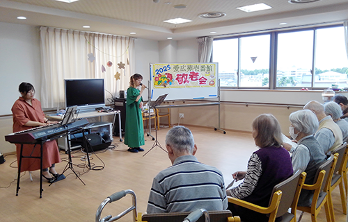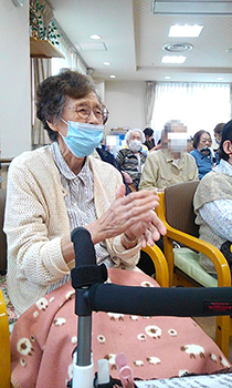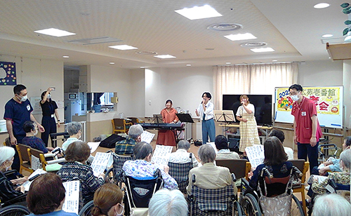 「四季の歌」や「上を向いて歩こう」などを演奏してくださり、皆様も演奏中は手拍子をされたり、一緒に歌を歌われていたりされていました。