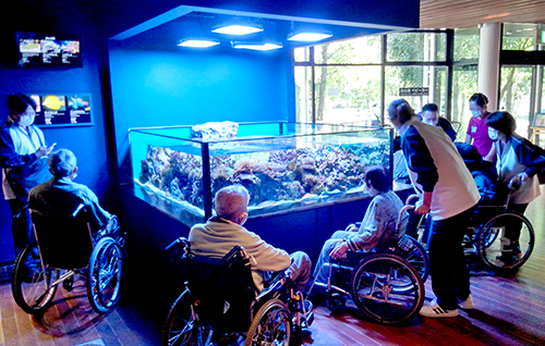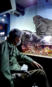 マリンピアに到着後は職員と一緒に様々な種類の魚を見て周りました。