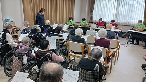 「青い山脈」「北国の春」など入居者の皆様に馴染みがある曲を演奏していただき、